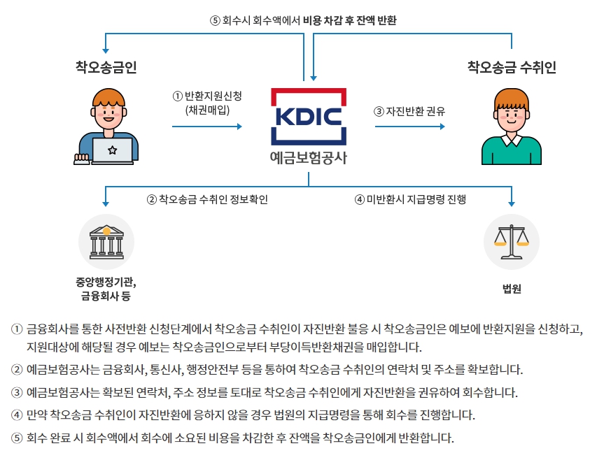 해당 제도는 송금인이 실수로 잘못 송금한 금전에 대해 예금보험공사가 대신하여 찾아주는 제도를 말합니다. 본 제도는 2021년 7월 6일부터 시행되어서 올해로 햇수로는 3년차가 되어 가는 제도입니다. 2023년 1월 1일 부터 반환신청 대상금액이 늘어나서 5만원 이상 ~ 5천만원 이하 송금액에 대해 신청이 가능합니다.