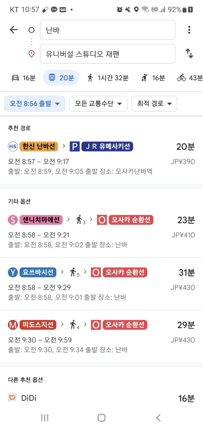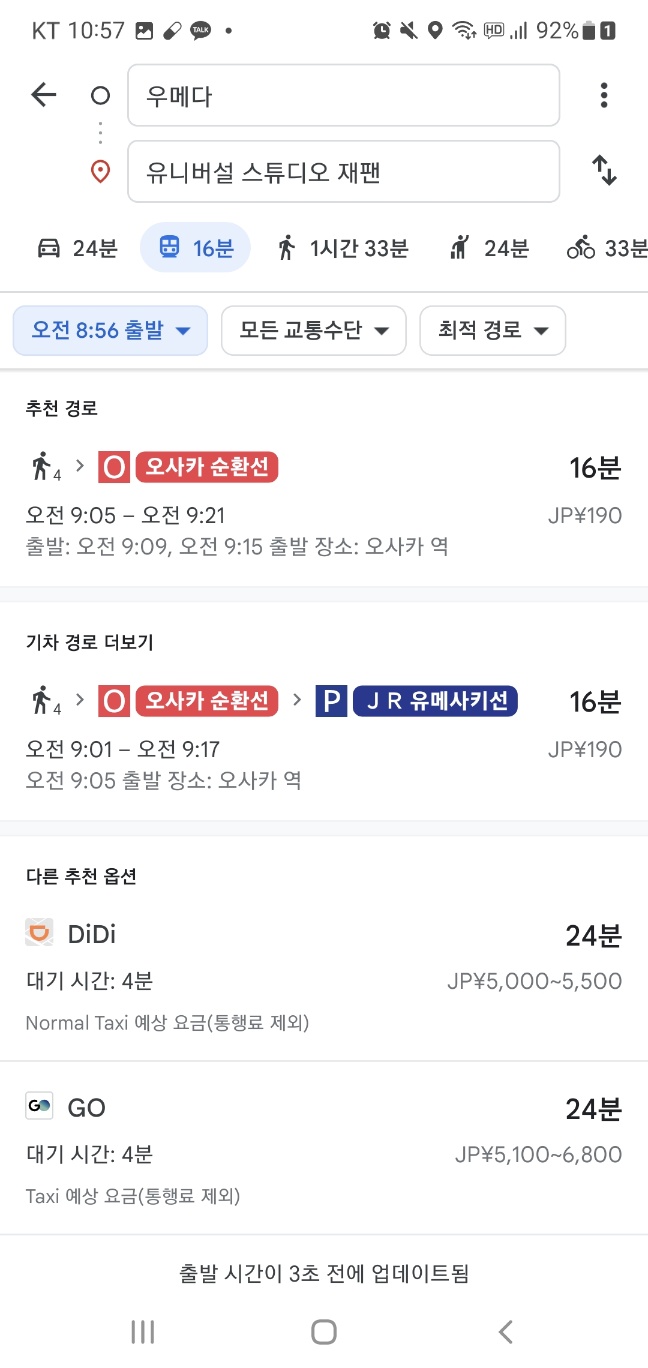 예를 들자면 아래와 같이 검색하셔서 해당 시간대에 맞는 방법을 찾아 가시면 되시겠습니다. 택시를 타시는 방법도 있긴한데, 일본의 택시비는 상당해서 가능하시다면 대중교통을 이용하시는 것을 추천드립니다.