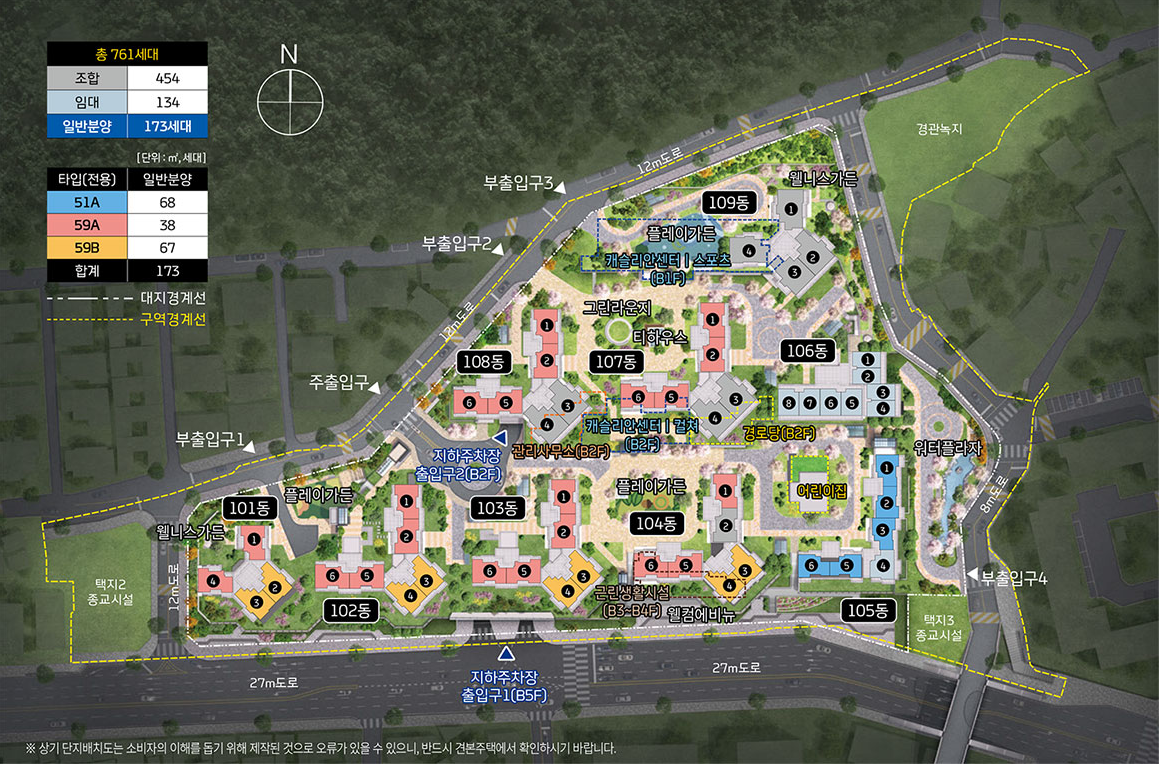 • 규모: 총 761세대 (일반분양 물량 173세대) / 9개동 (지하 6층 ~ 지상 18층)
