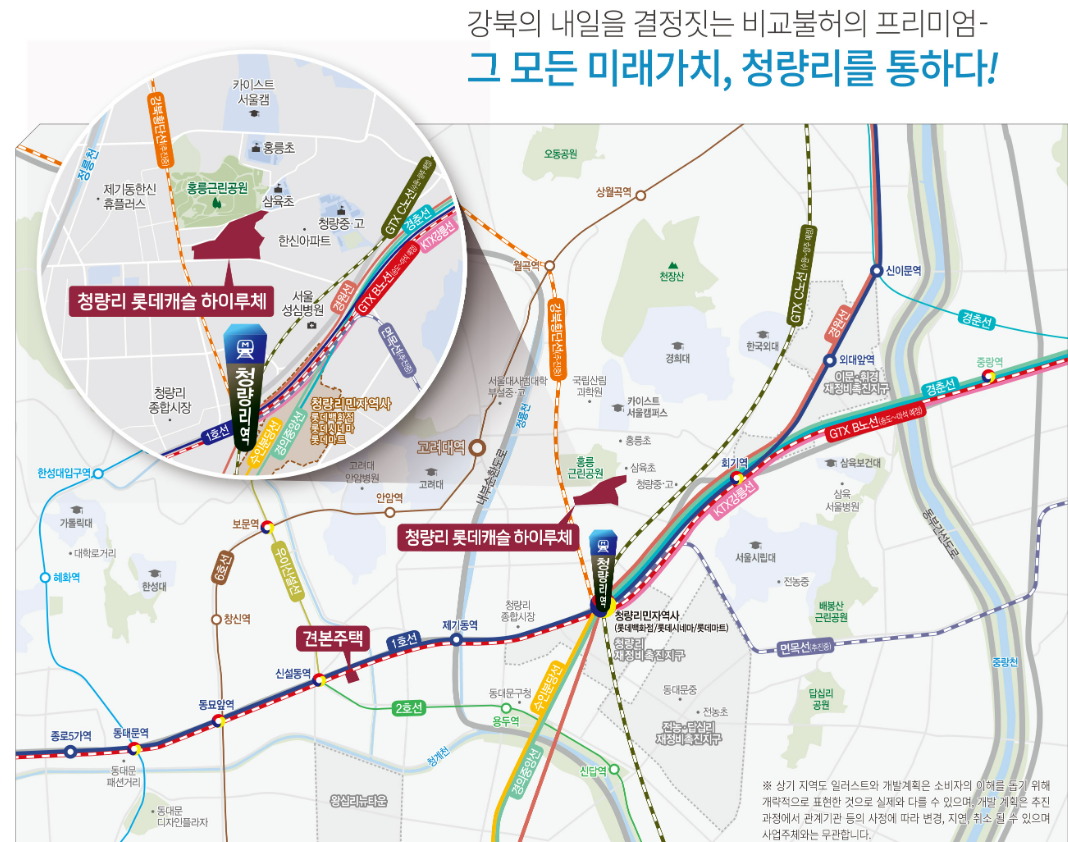 해당 단지는 청량리 7구역 재개발을 통해 공급되는 아파트 단지입니다. 청량리 지역은 과거의 낙후된 이미지를 벗어나서 환골탈태하고 있습니다. 때문에 향후 개발이 완료된 후 모습이 더 기대가 되는 곳이기도 합니다.