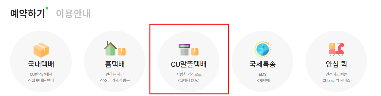 PC 기준으로 설명드리면 홈페이지에 접속 후 아래 그림을 참고 하여 CU 알뜰 택배로 들어가세요.