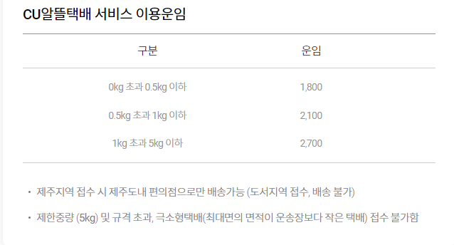 앞서 말씀드린 대로 편의점 반값택배는 말 그대로 가격이 가장 크 장점입니다. 택배 이용 가격은 아래와 같습니다. 배송까지는 일반적으로 3~5일가량 걸릴 수 있다고 했습니다.