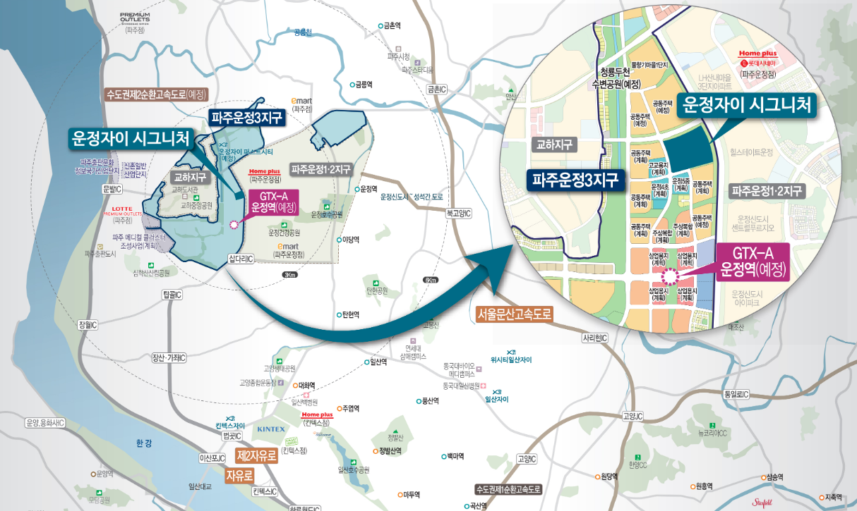 운정자이 시그니처는 경기도 파주시 운정지구에 공급하는 988세대의 단지입니다. 용적률도 신축임을 감안하면 180%가량으로 쾌적한 편으로 예상됩니다.