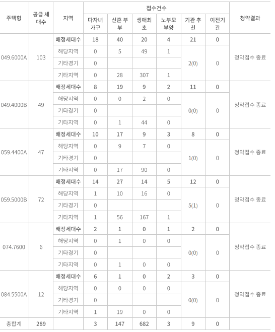 특별공급 결과는 하단의 접수 결과를 참고 바라겠습니다.