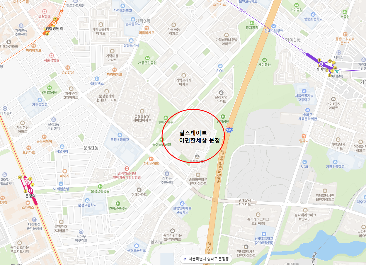 아파트 위치는 8호선 문정역과 5호선 거여역 그리고 3호선 경찰병원역 이용이 가능합니다. 다만 거리가 좀 있어서 도보이용은 무리가 있어 보입니다. 입지로는 좋아 보이지만, 아쉬운 점은 공급 84형은 조합원들이 전체 보유 중으로 금번 분양에는 대상이 안된다는 점입니다.