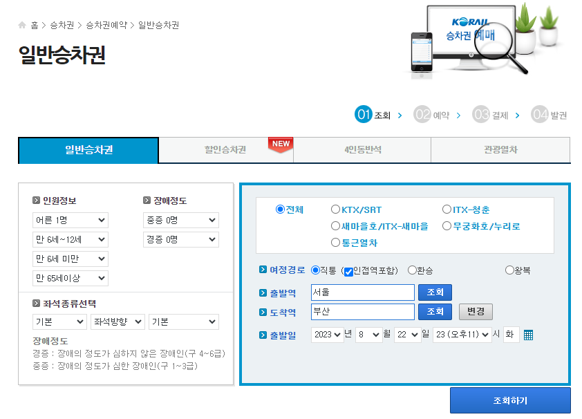 ▶열차권 일반 예매는 온라인(홈페이지, 모바일)으로만 시행됨 (역, 판매대리점, TMO에서 구입할 수 없음)